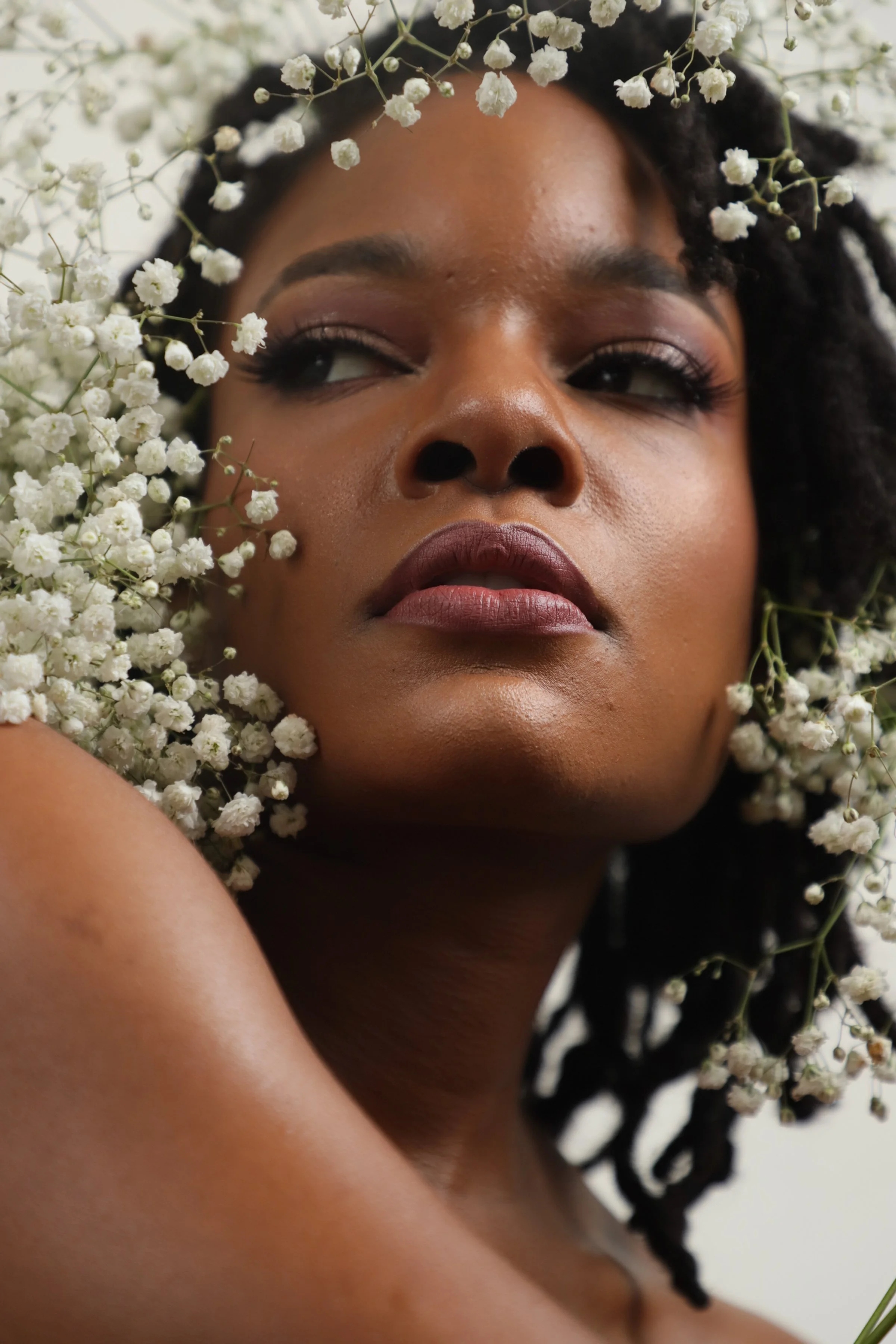 A remote trigger, Copper metallic paint by Mehron, and a Godox AD200 were used to capture these images. Light retouching and post-production gfx were the final touch to elevate this series for social.